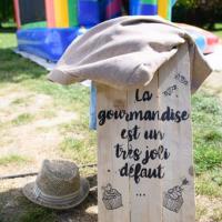 Louez nos panneaux en bois avec des inscriptions variées (ex. : "Deux oui pour un nom", "La gourmandise", etc.) pour ajouter une touche créative et personnalisée à votre événement. Ils apportent une touche charmante et amusante à n'importe quel décor.