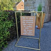 Contactez Éclats de Fête dès aujourd'hui pour réserver ce chevalet pratique et élégant pour votre prochain événement.