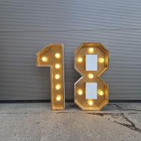 Chaque chiffre est conçu avec un intérieur de teinte dorée et un extérieur blanc, offrant un contraste élégant qui capte et reflète la lumière magnifiquement. De plus, nos lampes peuvent s'illuminer dans diverses couleurs, vous permettant de les adapter au thème de votre événement.