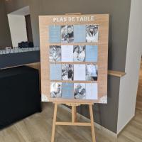 Inclut un plan de table standard sur un panneau affiché sur chevalet, sans personnalisation.