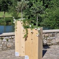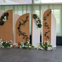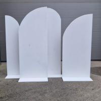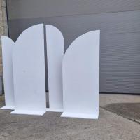 Ajoutez une touche élégante à votre événement avec ce lot de quatre panneaux en bois peint blanc. Chaque panneau est découpé en arrondi et fixé sur un support en bois pour créer une décoration harmonieuse. Le lot comprend deux largeurs (40 cm et 80 cm) et deux hauteurs (2 m et 1m80), offrant de la variété dans l'installation.