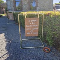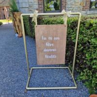 Contactez Éclats de Fête dès aujourd'hui pour réserver ce chevalet pratique et élégant pour votre prochain événement.