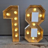 Chaque chiffre est conçu avec un intérieur de teinte dorée et un extérieur blanc, offrant un contraste élégant qui capte et reflète la lumière magnifiquement. De plus, nos lampes peuvent s'illuminer dans diverses couleurs, vous permettant de les adapter au thème de votre événement.