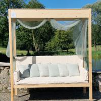 Ajoutez une dimension de sérénité et d'élégance à votre événement avec notre lit à baldaquin en bois naturel. Ce lit spacieux, mesurant 1m20 de profondeur, 2m20 de largeur, et 2m40 de hauteur, est fabriqué en bois naturel non teint pour un look authentique et épuré. Il est idéal comme pièce maîtresse pour des photos ou comme un espace de détente luxueux lors de mariages, fêtes, ou autres célébrations.