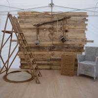 Louez ce studio photo unique, fabriqué à partir de planchettes récupérées de vieilles palettes et doté d'une double porte en bois. Créez un espace photo authentique et rustique lors de vos événements, ajoutant un charme incomparable.